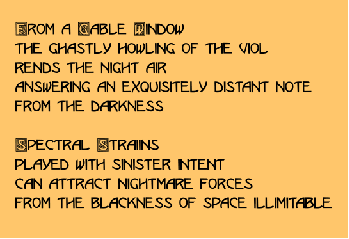 The poem above summarises the atmosphere and action within the composition. From the top of an old and crumbling building, a decrepit and ancient violin player listens to the sounds emerging from the darkness beyond his window. Something is calling to him, and he closes the window to block out the sound. The haunted summons continue, passing easily through the glass, so he picks up his violin and begins to play. The window panes begin to shudder, and the sounds outside become louder and louder. His playing becomes more and more frenetic until the window shatters and he is completely overtaken by the outside forces. This work is based on the ideas of Howard Philips Lovecraft, a writer famous for his horror fiction, written during the period of the 1920s and 30s. He worked primarily in a medium which is now recognised as "Cosmic Horror", a detached and haunting form involved with malevolent ancient gods, interstellar travel and nightmare forces of evil. The themes he worked with were of great and inexpressible proportions, trying to express the fear of things we don't understand, uncontrollable dark forces. Lovecraft represents these forces as being detached and vast, and most of the people on earth who dabble with them are driven insane by the magnitude of their discoveries. Identification with his writing shows an interest in that part of our subconscious that takes over when we sleep and dream; like exploring all unknown territories, the fear we feel shows a desire to come to some deeper understanding of this part our psyche. The work is basically the editing together and manipulation of four musical scenes. Three of these scenes were recorded in a large hall with stone floors, to provide an awesome and ominous soundscape. Oneof the scenes was recorded in a smaller acoustic space to provide contrast and room for the climactic build to the shattering glass. The composition makes use of dramatic effects that exaggerate the drama already present in the untampered scenes. These effects are functional in the way they imitate what happens in the "programme" of the work (window closing, glass smashing etc) but they still have an impact on the listener if if they don't know the programme. The composer of this composition considers the work to be as much a musical work as it is dramatic.