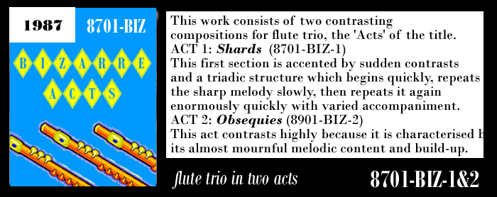 NOTES: This forms one of the 'Seven Incessant Cycles' for Solo Piano. The score is currently being prepared; recording is being made for use in a motion picture; it forms the basis for the film 'Zvotšlipas Umatšlipit' .