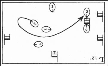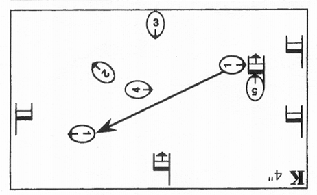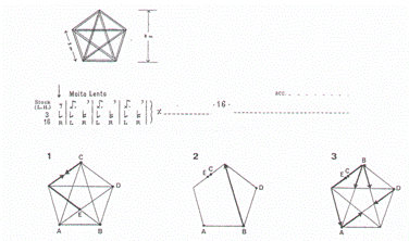 with walking sticks as they move between the corners of a pentagon. Comparable to Beckett's Quad