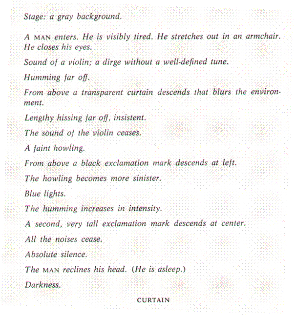 example of this expression of Stage-fright is his short play Quad