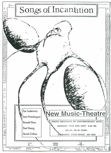 SONGS OF INCANTATIONconcert of new music-theatre organized by Zachàr Laskewicz in Perth 1992 |
