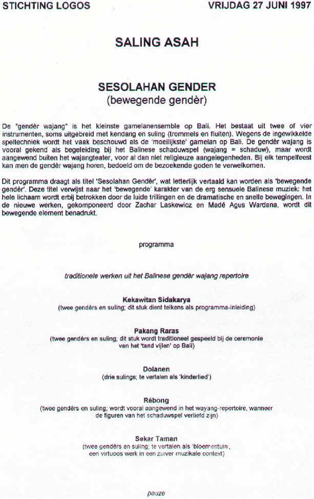 this motional aspect is emphasized. programme traditional works from the gender wayang