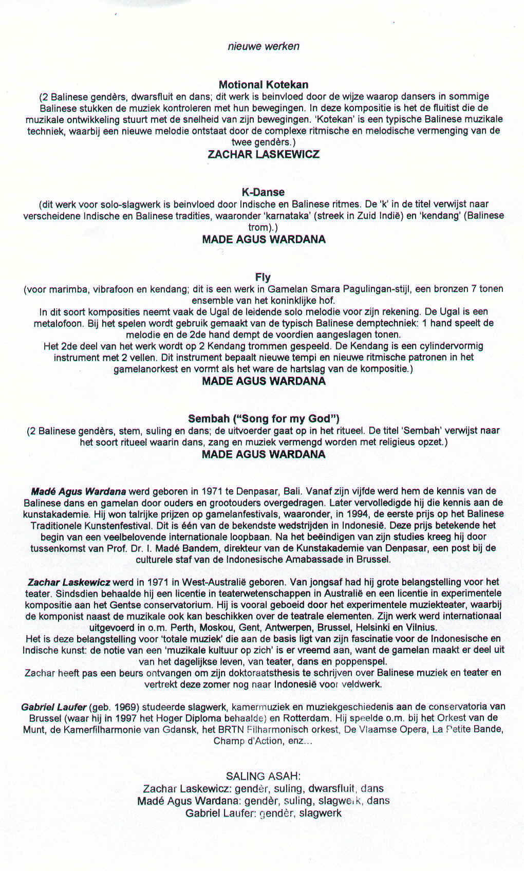 MADE AGUS WARDANA I Zachar Laskewicz was born in Gabriel Laufer (born in 1969) studied percussion, chamber music and