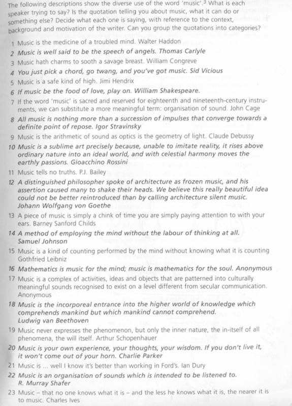 musical definitions and get them to see which they agree with. - Particular examples are played from a demo tape