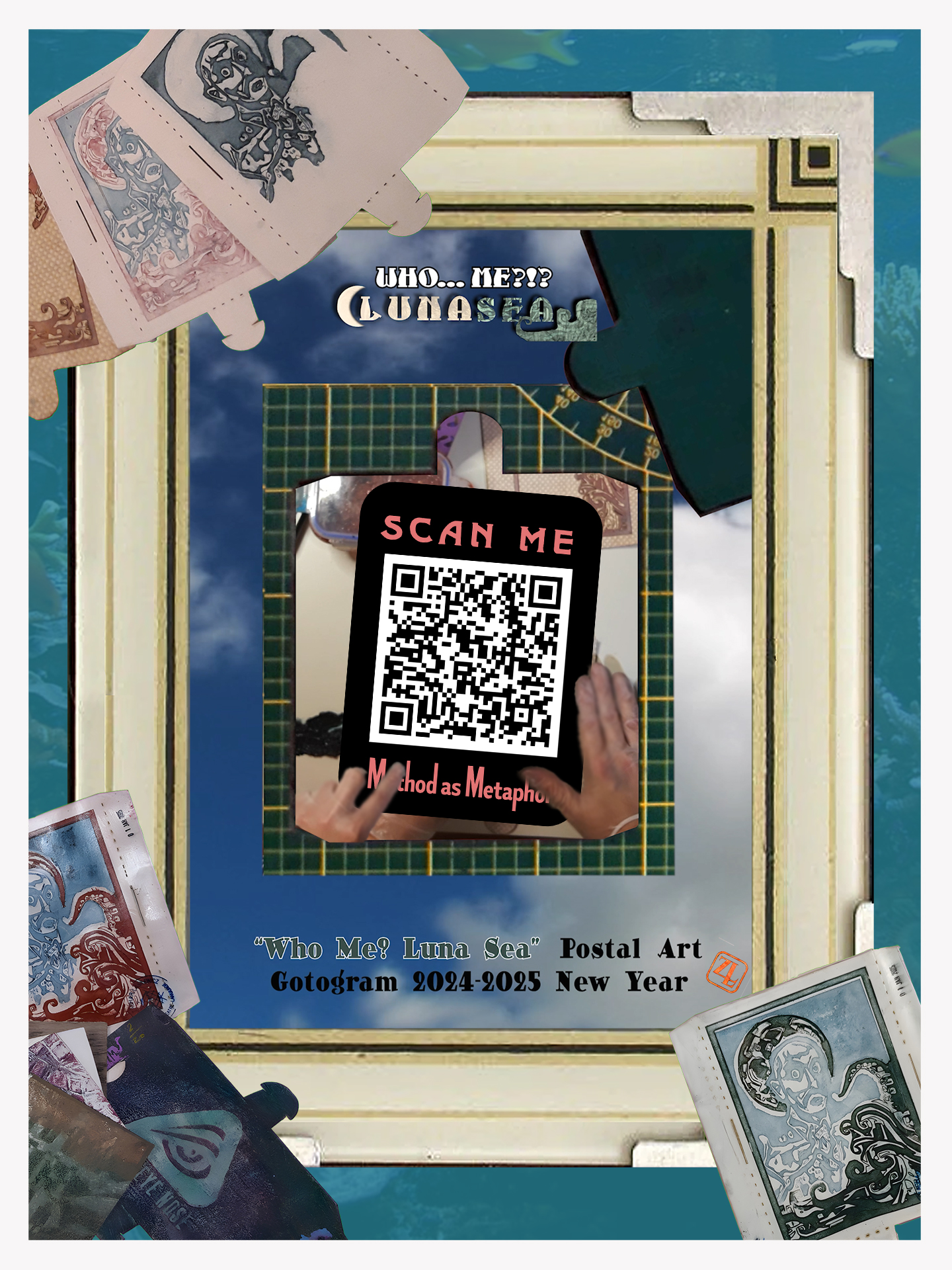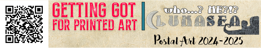 Scan the GIF in this artwork to reach the multimedia artwork/GIF called: GETTING GOT for Printed Art - WHO ME LUNACY: Postal Art 2024-2025: